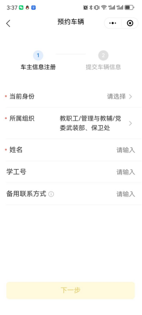 第四步:填写车辆信息。注意车辆照片请上传正前45度侧面照片,然后提交预约。