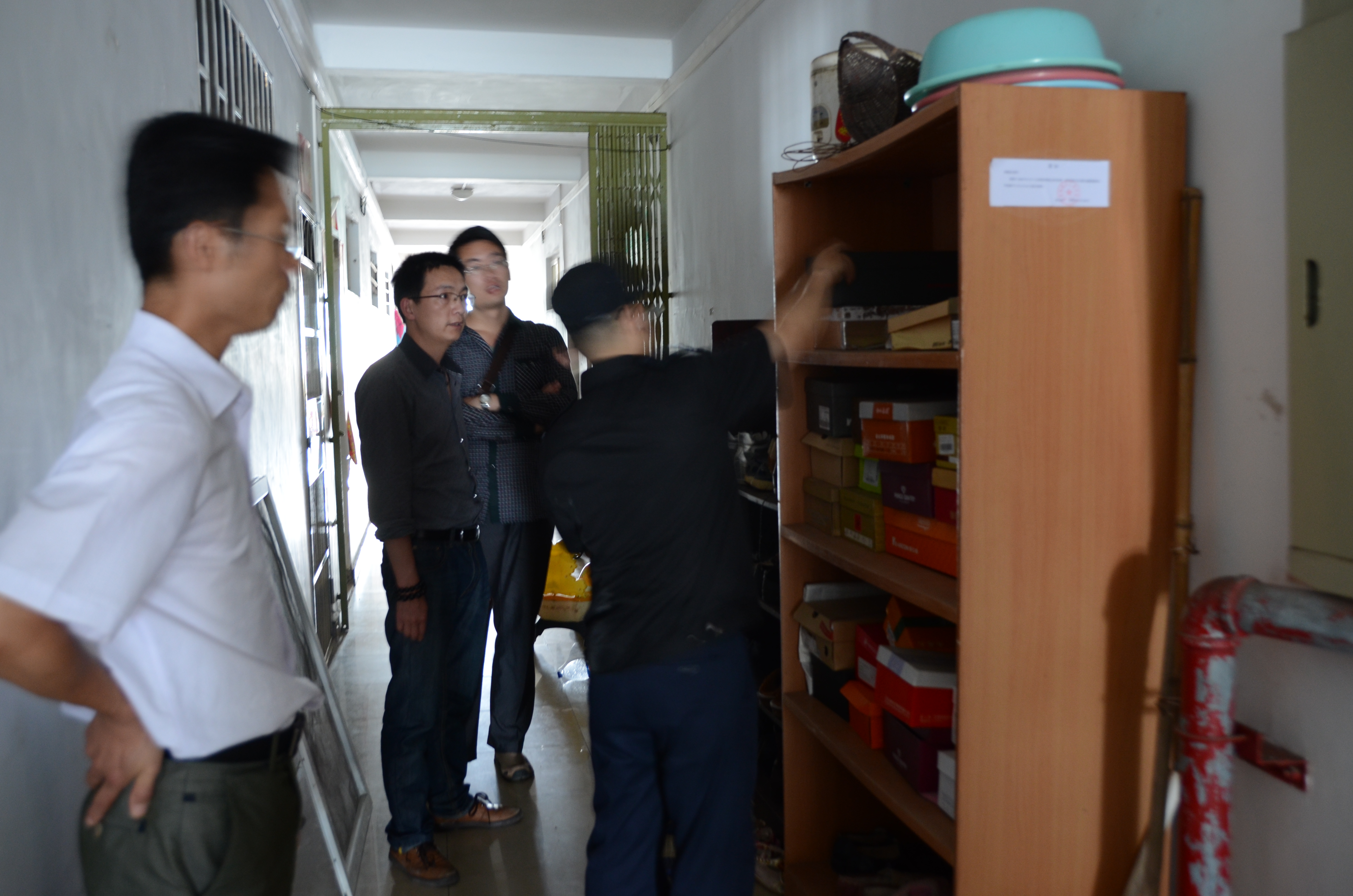 五月份学校党办(院办)、保卫处、基建处、国资处、后勤管理处、工会等相关职能部门主要负责人组成的治理清查小组于5月14日下午和21日下午,对学校南教工宿舍区开展了“消除火灾隐患,疏通消防通道”的集中治理活动。