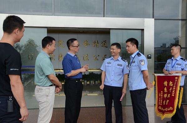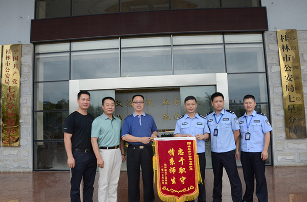 为感谢辖区公安机关对我校安全稳定工作的关心与支持,按照学校领导的指示,6月24日上午,保卫处刘武定处长一行4人来到桂林市公安局七星公安分局,代表学校向七星公安分局赠送了感谢信和“忠于职守,情系师生”锦旗。七星公安分局政委莫纪连接待了我方人员。