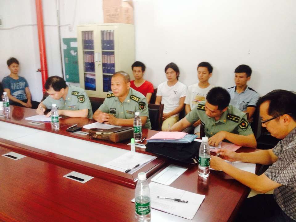 7月7日上午,七星区人武部政委田应军、副部长廖文刚、参谋阳丹等一行4人莅临我校并在武装部118会议室开展预定兵走访调查,武装部副部长卫涛、科长郭月军、相关院系辅导员及预定兵学生配合了调查。