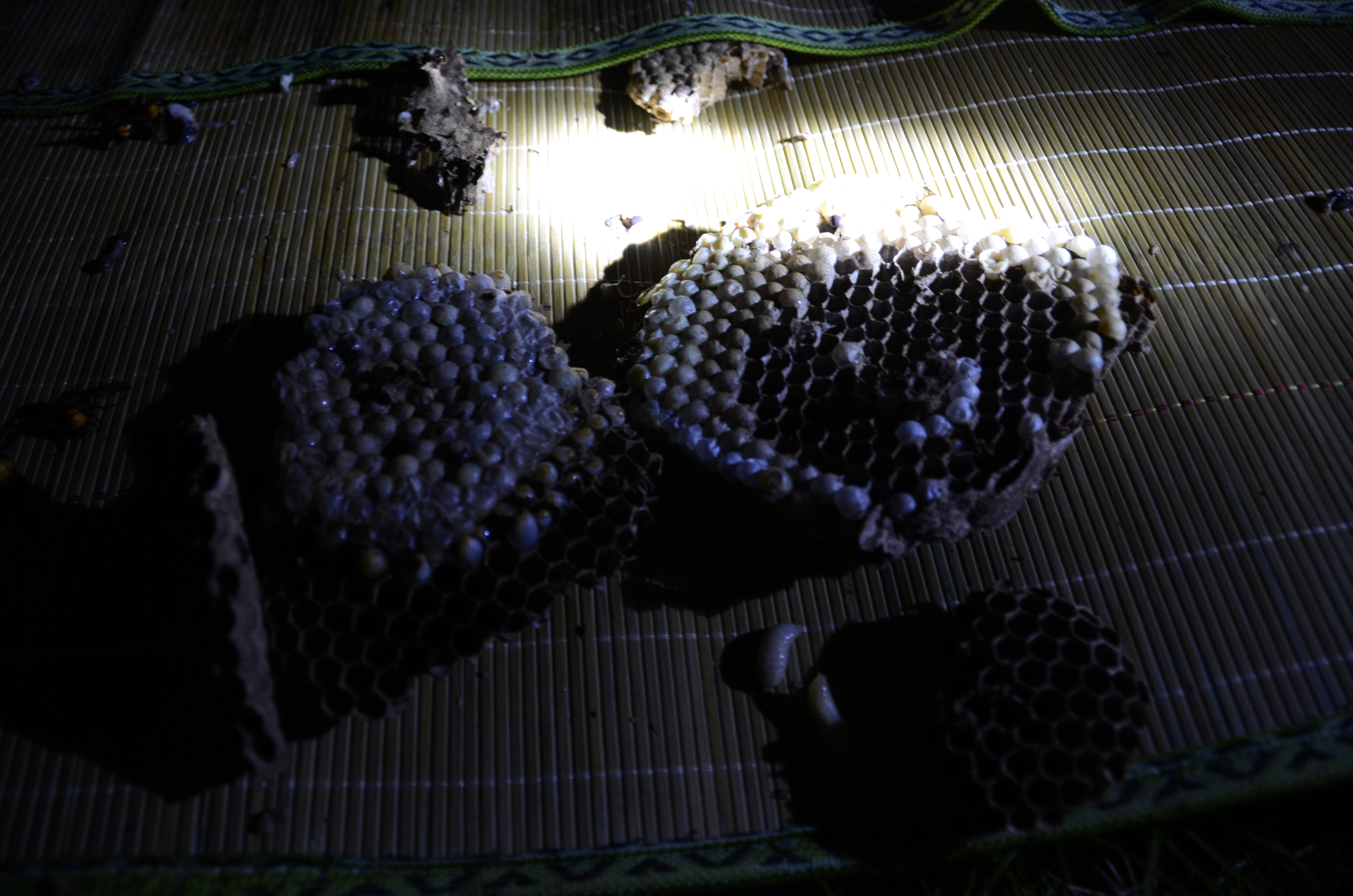 9月6日傍晚,我处接到住在南校区14栋公租房老师报料,在该栋楼东侧四楼玻璃窗外侧有一窝马蜂,直径约30cm大,成蜂不断地飞来飞去,很容易发生蛰伤人的危险。处领导立即安排治安管理科杨勇方副科长和当班队员进行灭蜂,经过约二十多分钟的“人蜂战”终于摘取蜂窝,消除了潜在的危险。