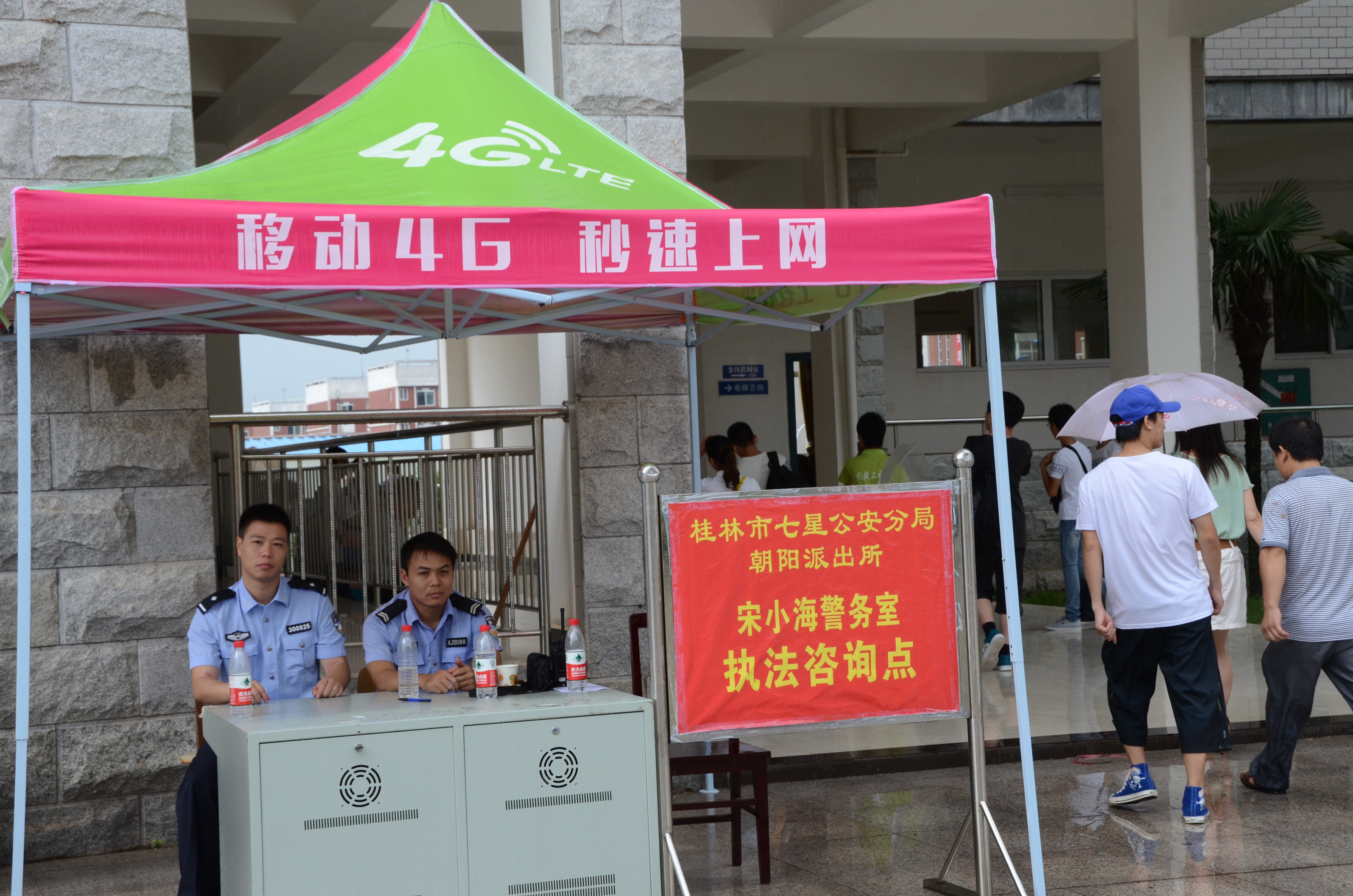 保卫处邀请了七星分局朝阳派出所座阵迎新现场,为新生进行法律知识解答,邀请了七星交警大队对我校南北校区路段进行交通秩序疏导;七星城管大队在校园外一条街清理占道经营商家,规范市场秩序;在南北校区内各交通要道设置了导向指示,各点安排了队员值班;南北校区两个交费大厅派人维护秩序;校园110巡逻车对南北校区不间断巡查,确保新生报到安全,工作秩序井然,顺利地完成了迎新任务。