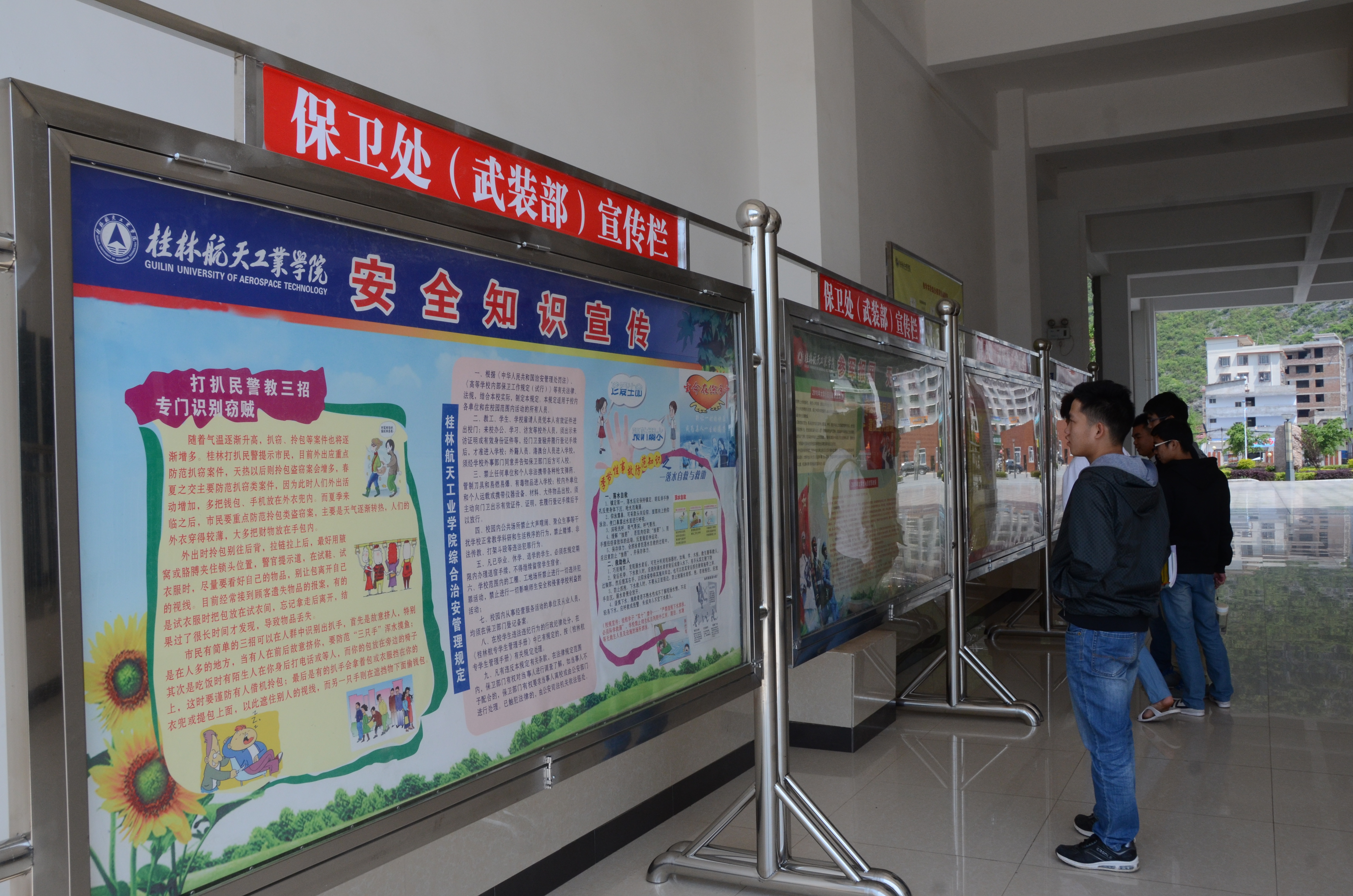 根据年度工作安排,近日,保卫处(武装部)制做了关于安全知识、征兵宣传、消防安全、户政办理方面知识宣传栏,在南校区教学实验综合楼人流量非常大的西侧通道进行展出。为师生在安全防范、征兵政策、消防安全知识、户籍政策等方面提供了快捷、明晰的知识平台。