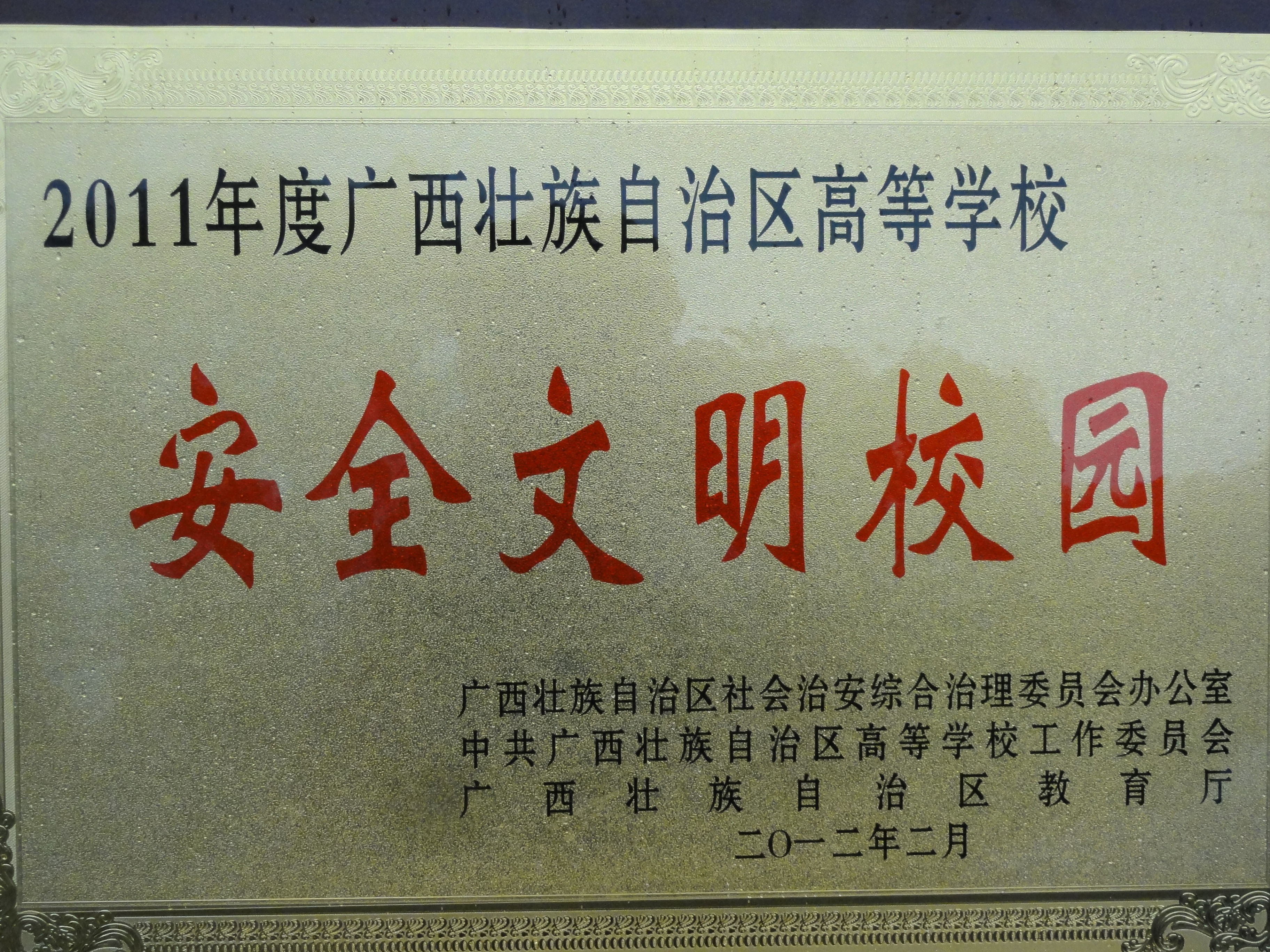 刘武定处长就我校安全稳定工作的现状,存在的困难及开展大学生安全教育、国防教育的情况进行了汇报和交流,并带回了我校“2011年度广西高校安全文明校园”荣誉牌匾。