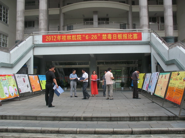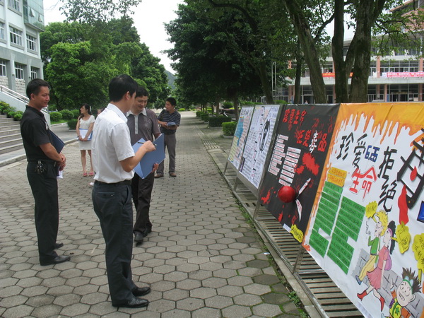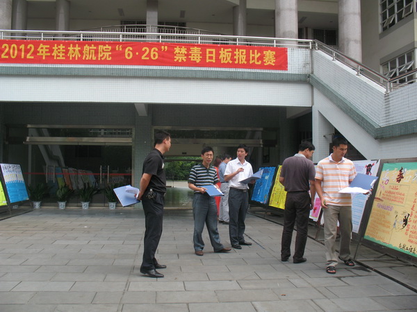 2012年6月26日是国际第25个禁毒日,为进一步加强我院学生对毒品危害的认识,增强自我保护意识,提高抵御毒品的能力。我院在一号教学楼前举行了一次“珍爱生命 远离毒品”专题板报评比活动,此次活动共有8个系参加评比,邀请到党办、校办副主任吴世先、校团委书记王凯、学工部副部长杨永昌、副部长杨华、宣传部科长周志高等进行科学评分。