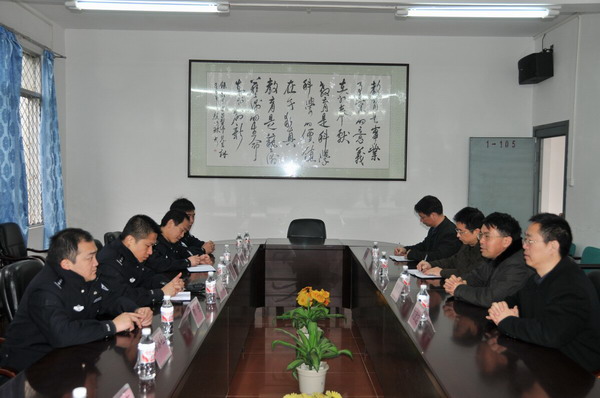 2月22日上午,按照公安部的统一部署,桂林市七星公安分局第四责任区刑警大队大队长谭亢、副大队长杨张,朝阳派出所教导员周建明、副所长莫家斌等一行6人,到我校开展“大走访开门评警”活动。郝德温副校长,保卫处刘武定处长,党办、校办覃宏图副主任等人参与了座谈。