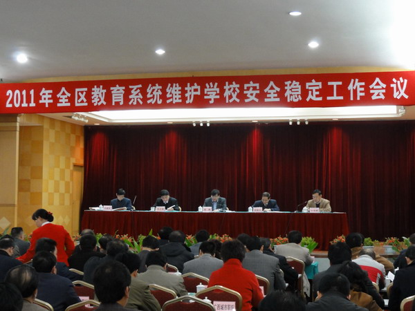 会上,自治区高校工委书记、教育厅高枫厅长总结了2010年全区教育系统安全稳定工作情况,布置了2011年安全稳定工作。自治区政法委副书记、维稳办副主任闫保光、自治区公安厅副厅长陈志德、自治区国家安全厅国保总队副总队长农建明到会讲话,与会人员就如何抓好全区教育系统维护学校安全稳定工作进行了分组讨论。