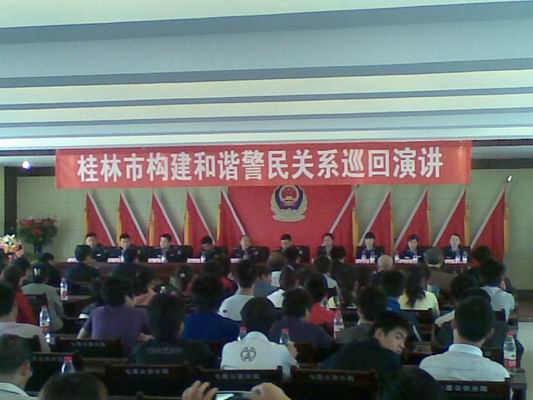 2011年4月18日下午,我校师生代表参加了在桂林市公安局七星分局举办的构建和谐警民关系巡回演讲活动。
