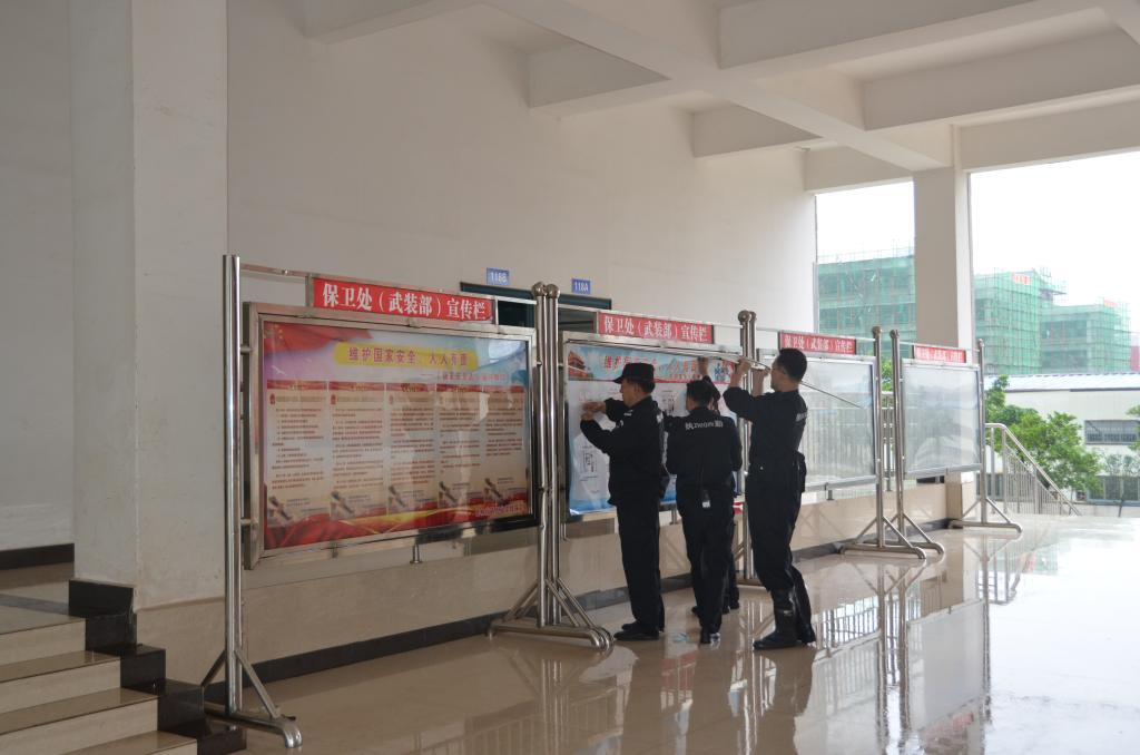 国家安全教育日活动期间,保卫处在校内悬挂国家安全主题横幅,张贴国家安全主题海报,并向广大师生散发国家安全教育宣传单。提高了师生的安全意识,筑牢了思想安全防线。