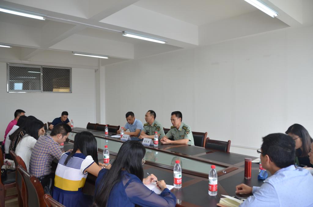 6月1日上午,桂林市七星区人民武装部部长张松军上校、政委周足根上校一同到我校开展征兵工作“面对面”交流会,学校武装部“征兵工作站”负责人、学生就业指导中心相关人员及毕业班辅导员参加了会议。
