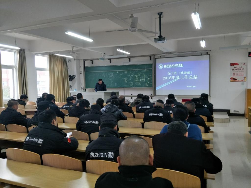 2019年3月1日下午,保卫处在飞天楼204室召开2018年度工作总结暨表彰会,保卫处全体人员参加了会议,副处长卫涛主持会议。