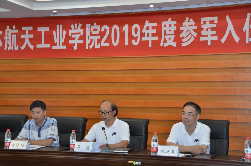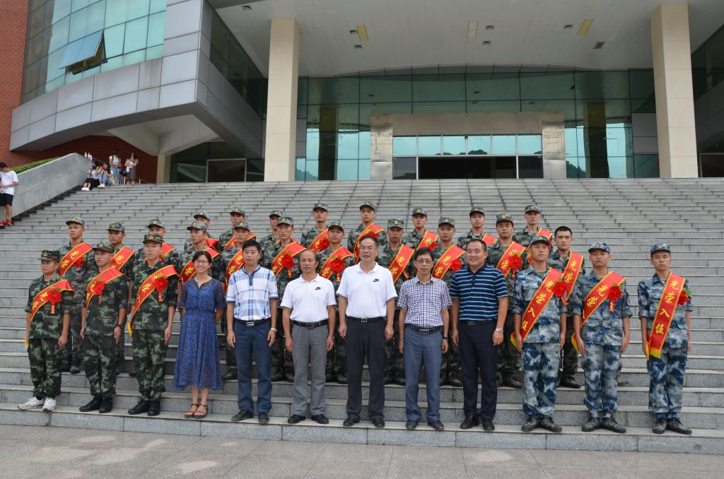 9月9日下午,我校在南校区飞天楼520会议室为即将奔赴军营的27名入伍大学生举行入伍欢送仪式。学校校长易忠、党委副书记刘迎春出席会议,宣传部、学工部、教务处、武装部、校团委主要负责人,各学院分管学生工作负责人、辅导员代表、在校学生代表及入伍大学生家长代表参加了欢送仪式。