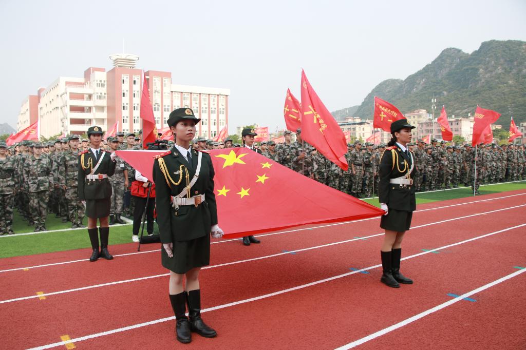 9月15日上午,秋风送爽,红旗飘飘,我校2019级新生军训开营仪式在南校区田径运动场隆重举行。学校党委副书记刘迎春、广西绿邦国防教育训练基地主任谢晓丹、学校宣传部、学生工作部、武装部、校团委负责人及各二级学院分管学生工作负责人参加本次开营仪式。仪式由武装部负责人主持。