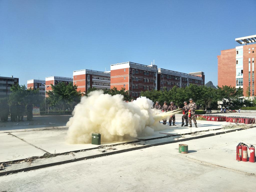 此次演练分别在南、北校区共六个场地同时进行。承训单位教官重点围绕火灾的基本类型、扑灭方式,向同学们详细讲解了消火栓和干粉灭火器的正确操作使用以及火灾的预防与扑救、疏散与逃生等消防知识,并现场进行消防器材的操作演示。