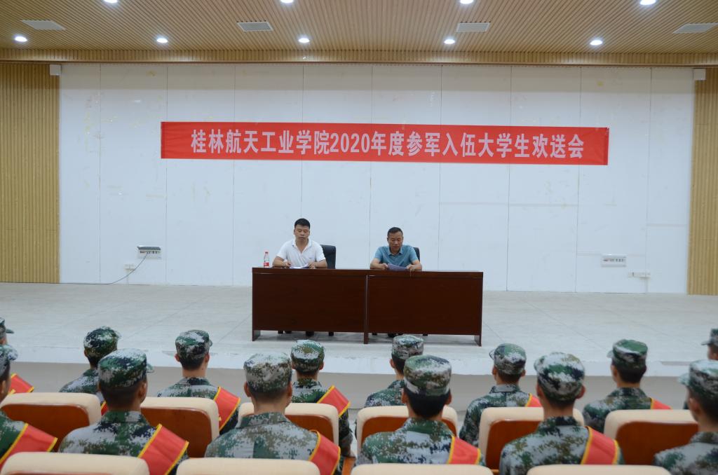 9月9日上午,我校武装部副部长张肖伟及相关人员前往桂林市中小学生示范性综合实践教育中心为即将奔赴军营的22名入伍大学生举行入伍欢送会。