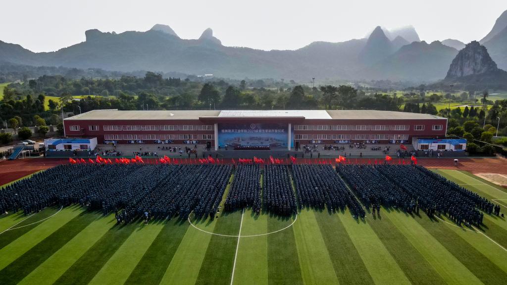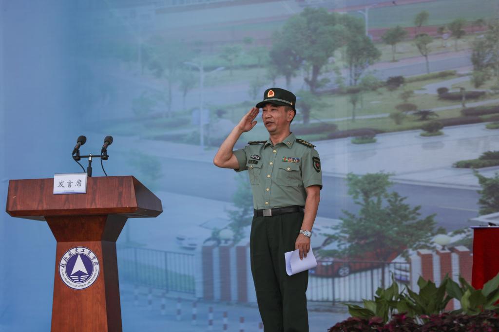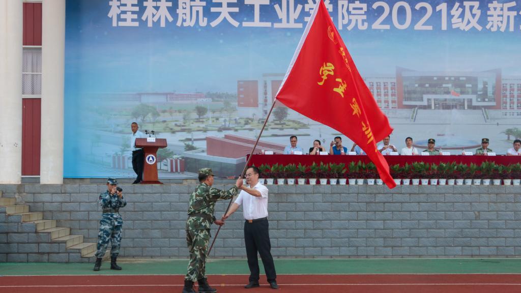 2021级新生军训开营仪式在南校区田径运动场隆重举行。学校党委副书记刘迎春,桂林警备区党委委员、七星区人民武装部部长张松军,桂林警备区战建处中校参谋谢钟权出席开营仪式,学工部、教务处、武装部、校团委负责人及各二级学院党总支副书记参加本次开营仪式。
