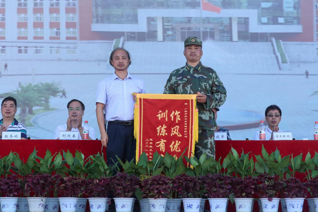 为感谢承训部队对我校军训工作的大力支持,校长易忠代表学校向承训单位赠送了锦旗。