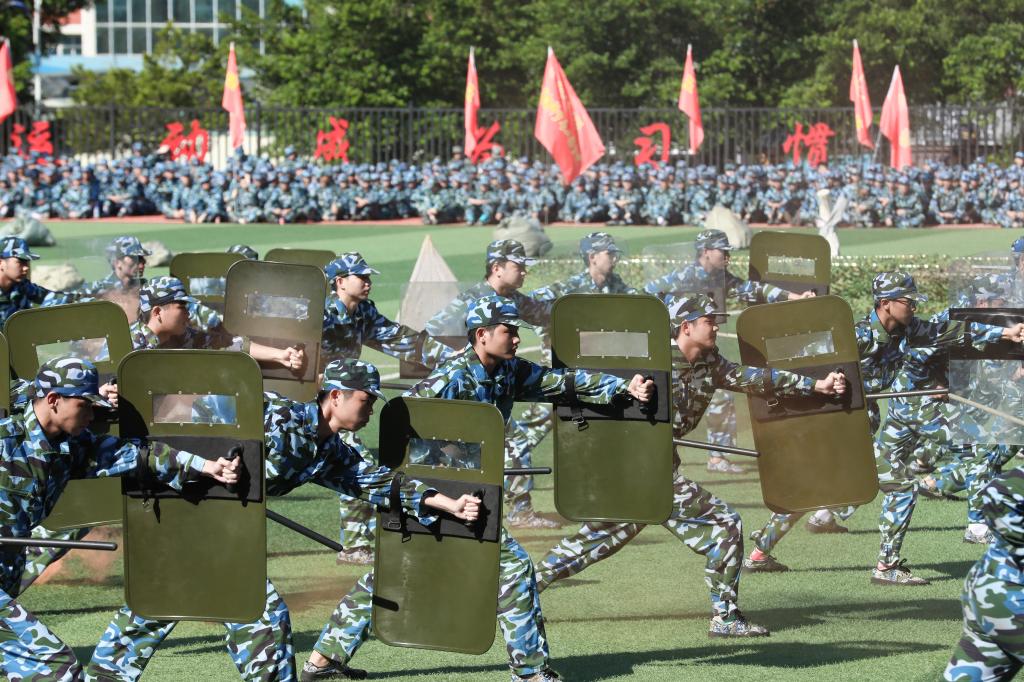 学生军训团团长钟建军向2021级新生表示祝贺,充分肯定他们在军训中所取得的优异成绩。他希望同学们通过军训增强国防意识,提高军事素养。