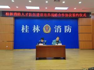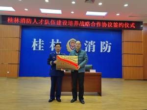10月22日,我校党委常委、副书记刘迎春受邀参加桂林市消防救援队伍人才队伍建设培养战略合作协议签约仪式,与桂林市消防救援支队刘凯政委共同签订队伍建设培训战略合作共建协议。