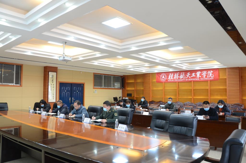 12 月 24日上午,全区高校征兵工作动员部署网络视频会议在南宁召开。自治区教育厅二级巡视员汪维出席会议,广西军区动员局局长谢峰主持会议。学校党委副书记刘迎春、桂林市七星区征兵办公室参谋王文华、学工处、教务处、武装部主要负责人,1-10院分管学生工作负责人在我校飞天楼517视频会议室分会场参加了会议。