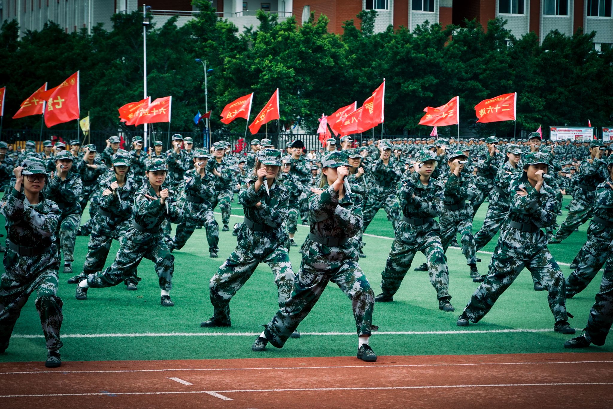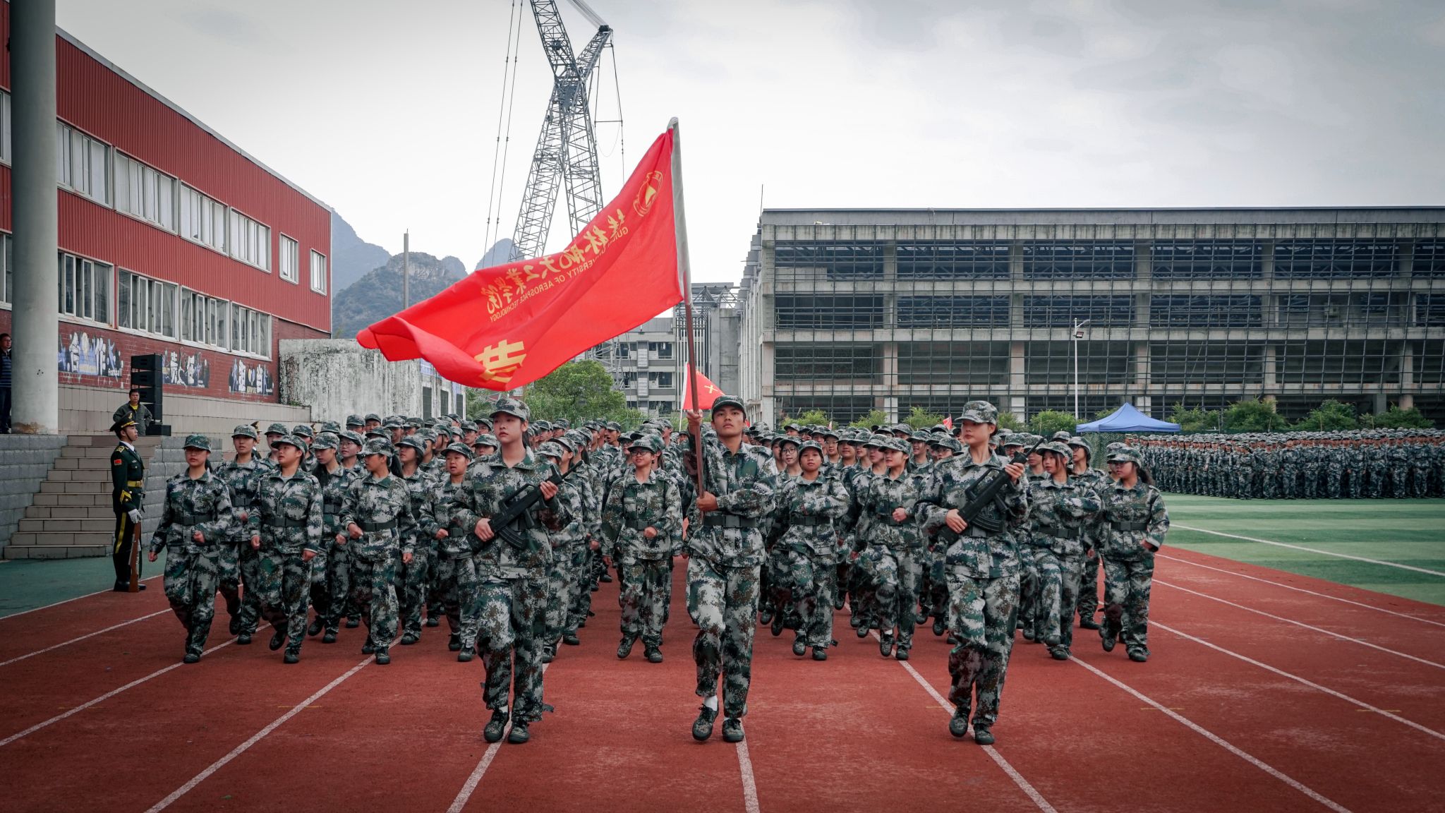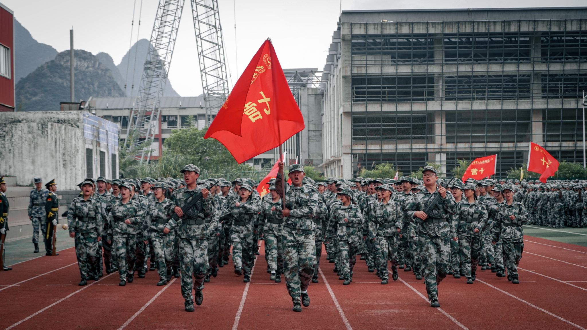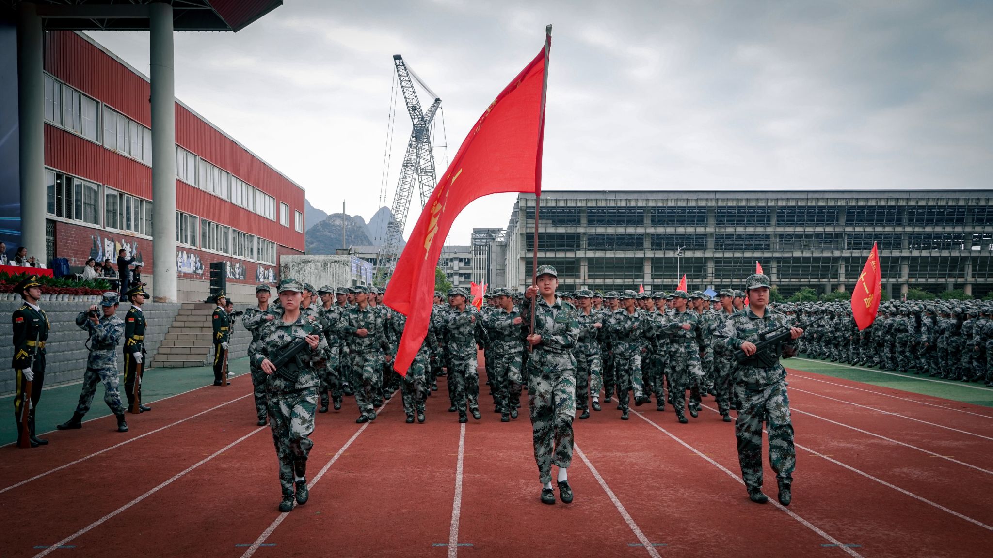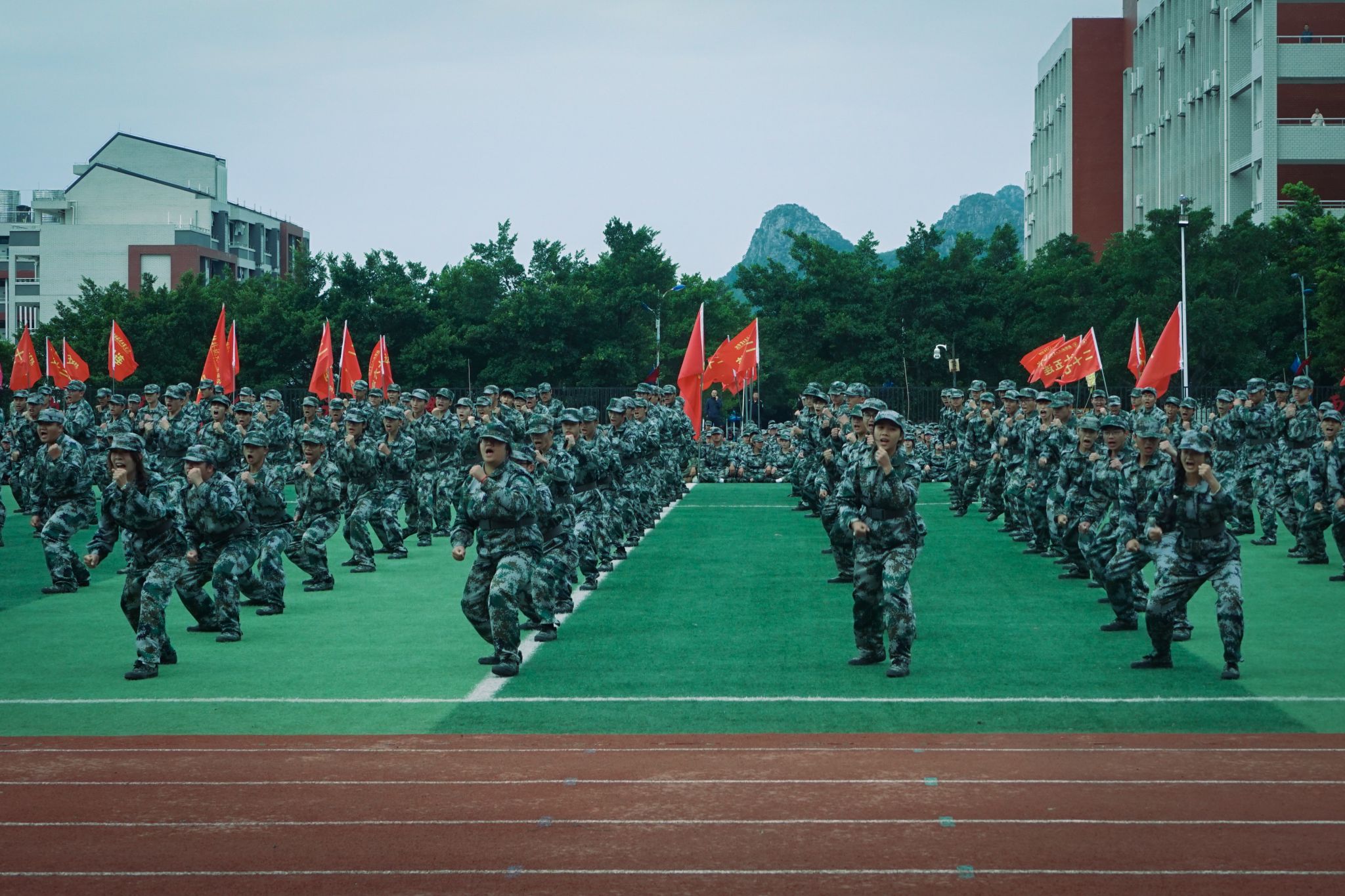 在雄壮的国歌声中,2024级学生军训会操典礼正式拉开帷幕。伴随着分列式进行曲的铿锵节奏,分列式展演正式开始。十一个分列式方阵喊着嘹亮的口号依次通过主席台,他们步伐坚定,身姿挺拔,目光坚毅,精神抖擞,展现着青春活力与拼搏精神。