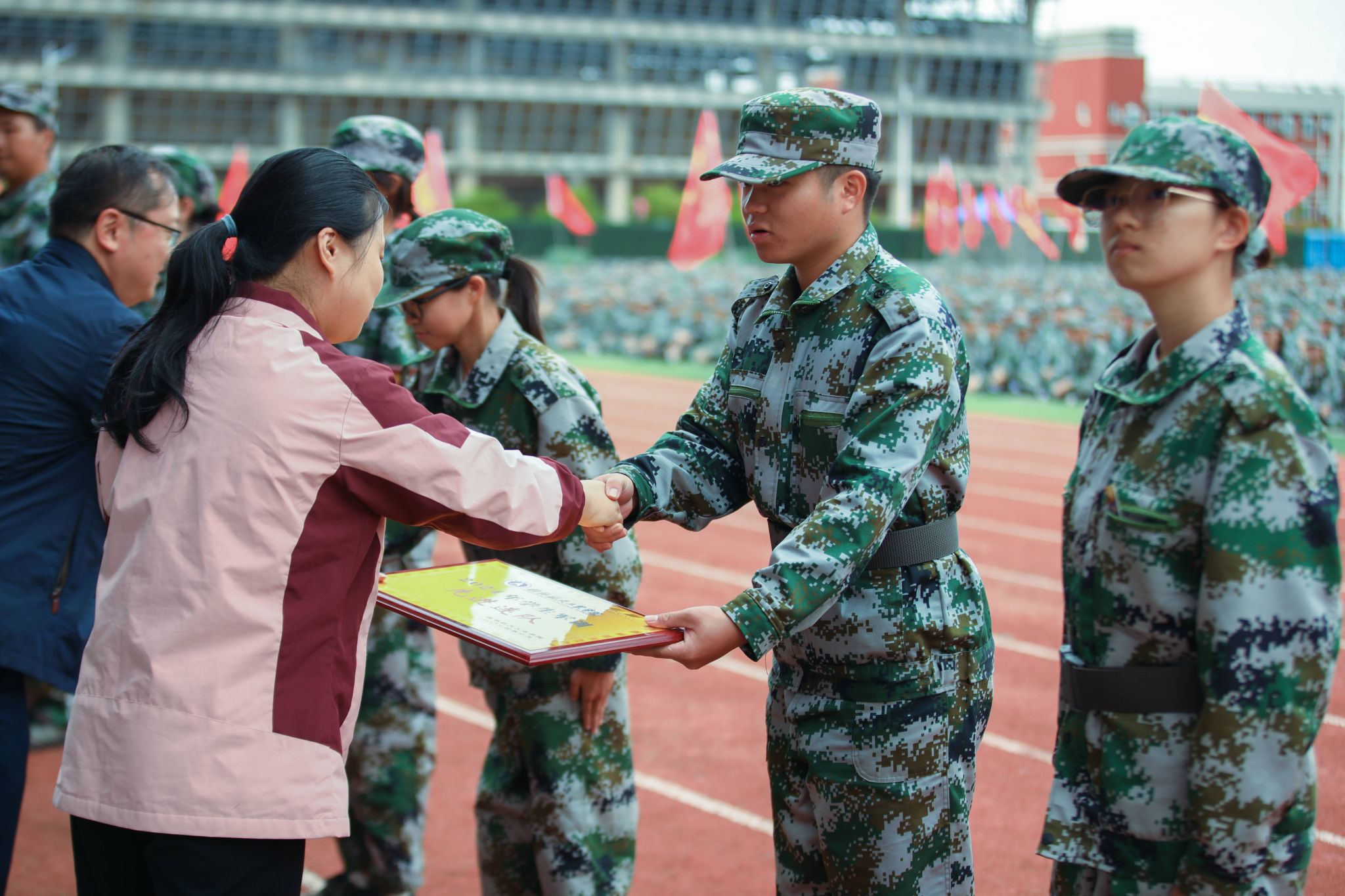 汇报表演结束后,开展了军训总结表彰大会,武装部负责人宣读了军训先进集体及个人表彰通知,并现场依次颁发相应奖项。