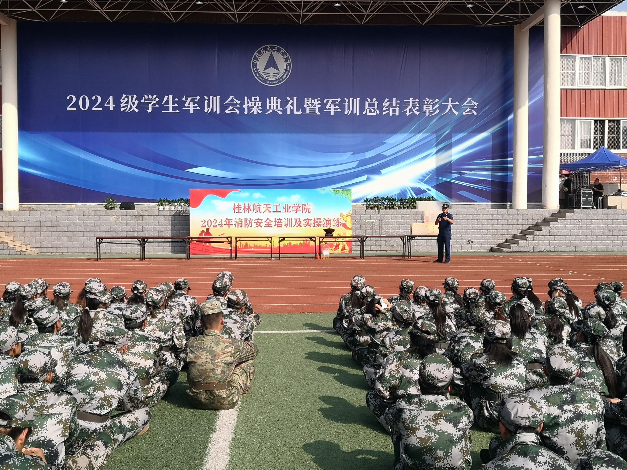 为增强学生的消防安全意识,培养学生在火灾中的自救自护能力,10月21日下午,我校联合桂林消防支队、七星消防救援大队在南校区田径运动场开展2024年消防安全培训及实操演练。2024级全体学生参加培训及演练活动。