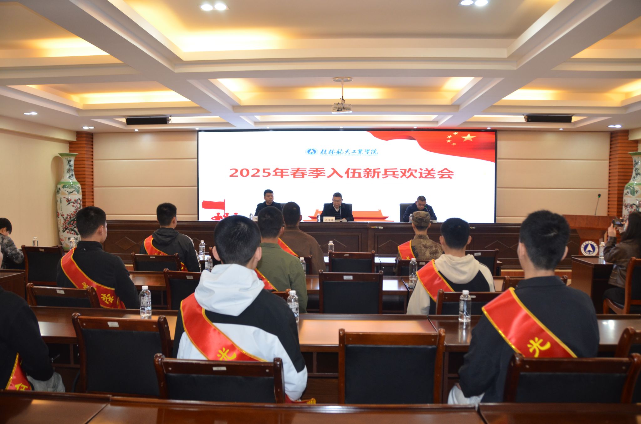 3月13日,我校在飞天楼520会议室举行2025年春季入伍新兵欢送会,为即将奔赴部队的新兵们送行。学校征兵工作站负责人、大学生退役军人协会代表、军事爱好者协会代表、国旗护卫队代表、入伍学生辅导员代表、入伍新兵及入伍学生家长代表参加了欢送会。