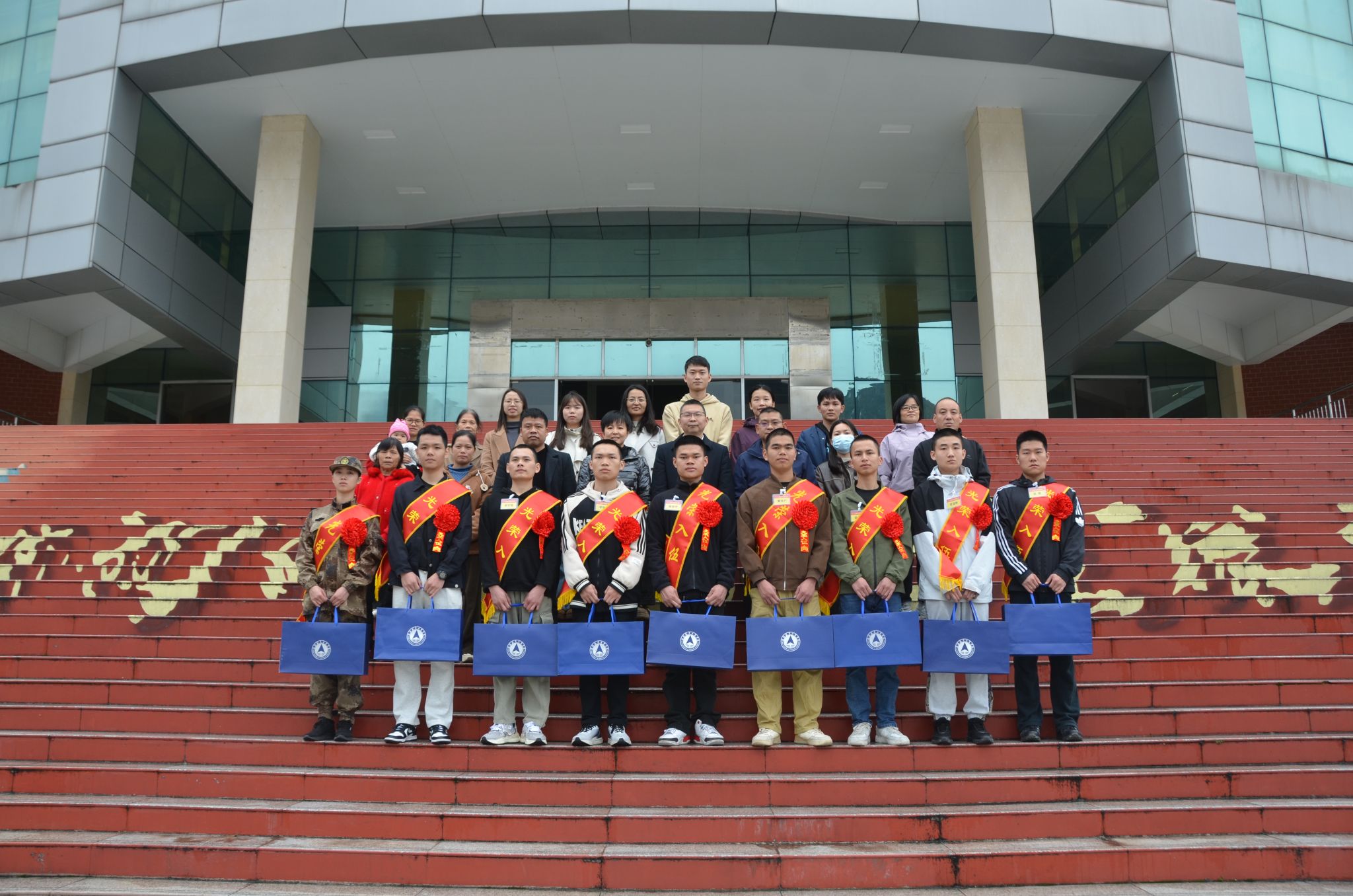 随后,学校征兵工作站向入伍新兵赠送了纪念品并合影留念。