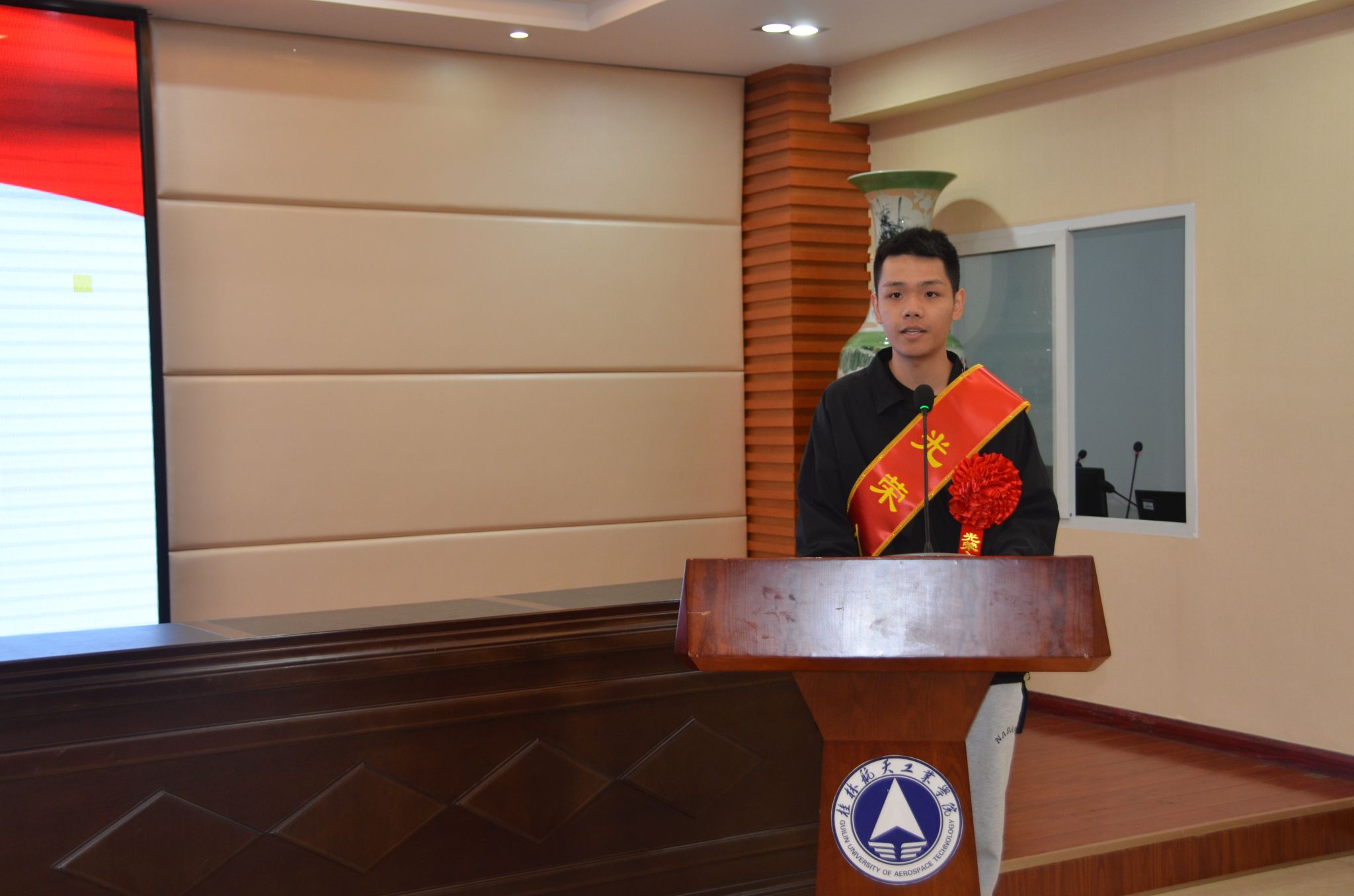 我校征兵工作站负责人史吉锋首先对应征入伍的新兵表示祝贺,并向积极支持子女参军报国的家长及支持征兵工作的辅导员老师表示感谢。他表示军队是培养人才的大熔炉,更是锻炼意志的大课堂。希望入伍新兵:一要铸魂砺志,做捍卫国家利益的忠诚卫士;二要精武强能,做守护万家灯火的钢铁长城;三要传承基因,做传播母校形象的文化使者。让“特别能吃苦、特别能战斗、特别能攻关、特别能奉献”的航天精神融入血脉,让“艰苦奋斗,自强日新”的桂航精神在军营闪光,为学校增光添彩。